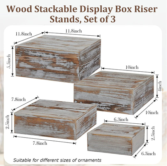 Set of 4 Wood Display Risers Rustic Cupcake Stand Wooden Stackable Display Box Wood Cake Stand for Dessert Wedding Birthday Baby Shower Party (Classic)