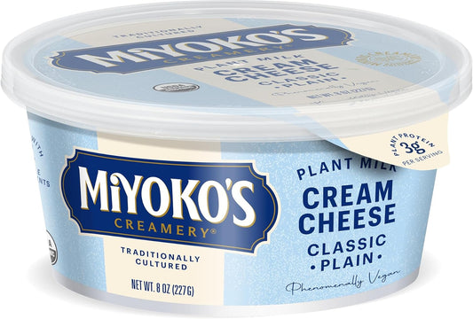 MIYOKO'S CREAMERY Organic Vegan Cream Cheese, Classic Plain, 8 Oz Tub (1-Pack)